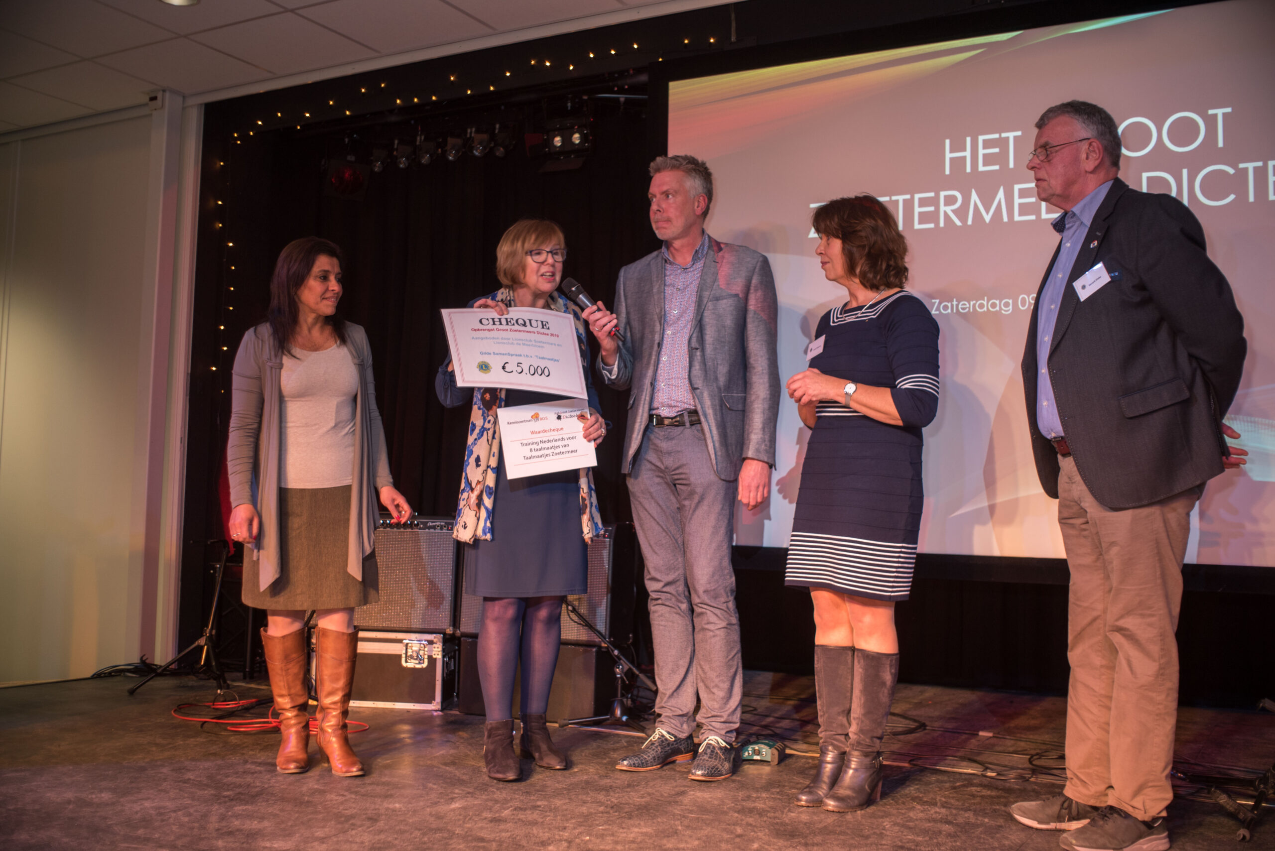 Het dictee werd gehouden voor de Stichting Taalmaatje die een cheque van 5000 euro in ontvangst mocht nemen. Winnaar van het dictee was Rein Leentfaar. Het team ‘De Woordenaars’ werd de teamwinnaar.